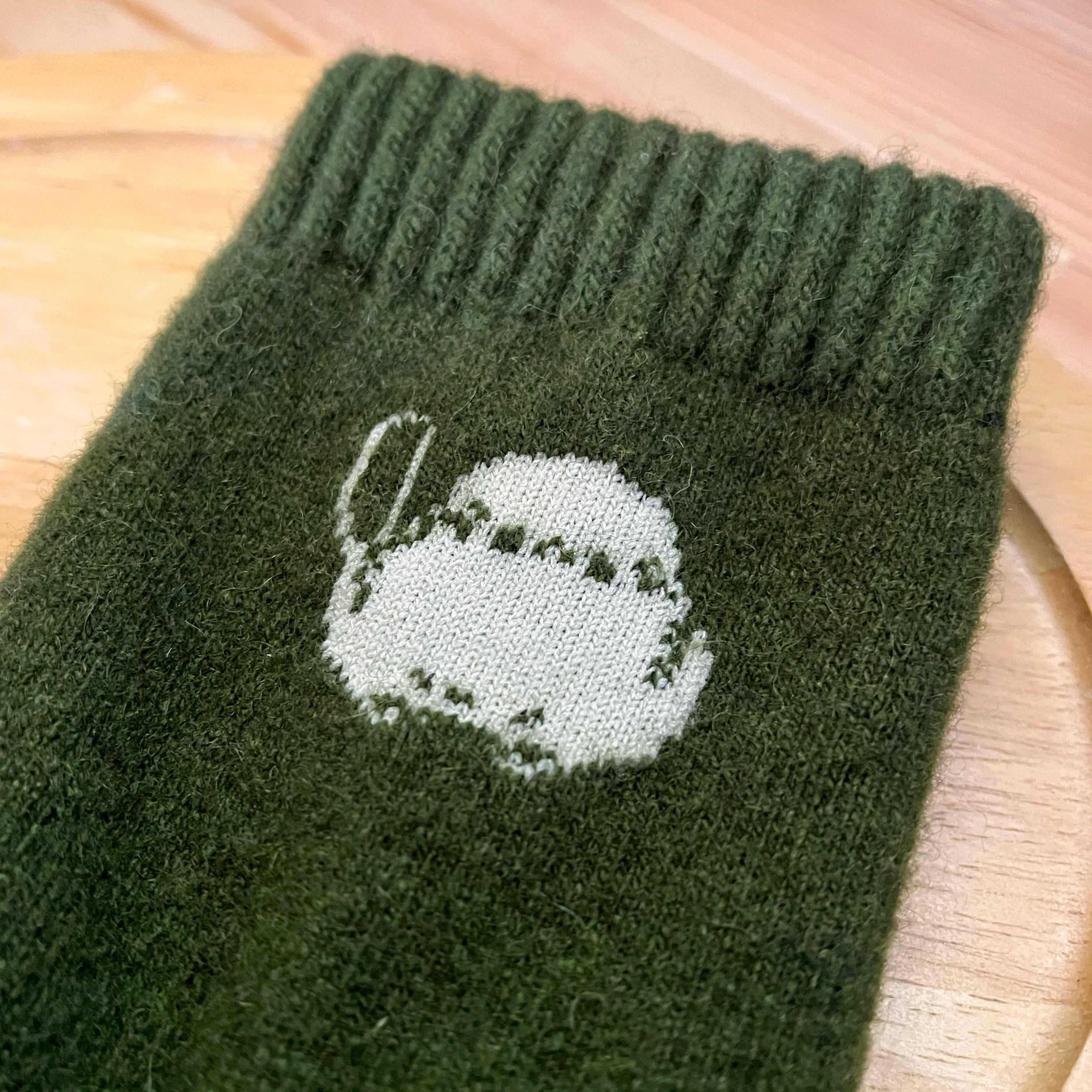 【緑】シマエナガのモンゴルウール靴下(HOWHOUSE×MONGOL WOOL×ぴよ手帖 コラボ)