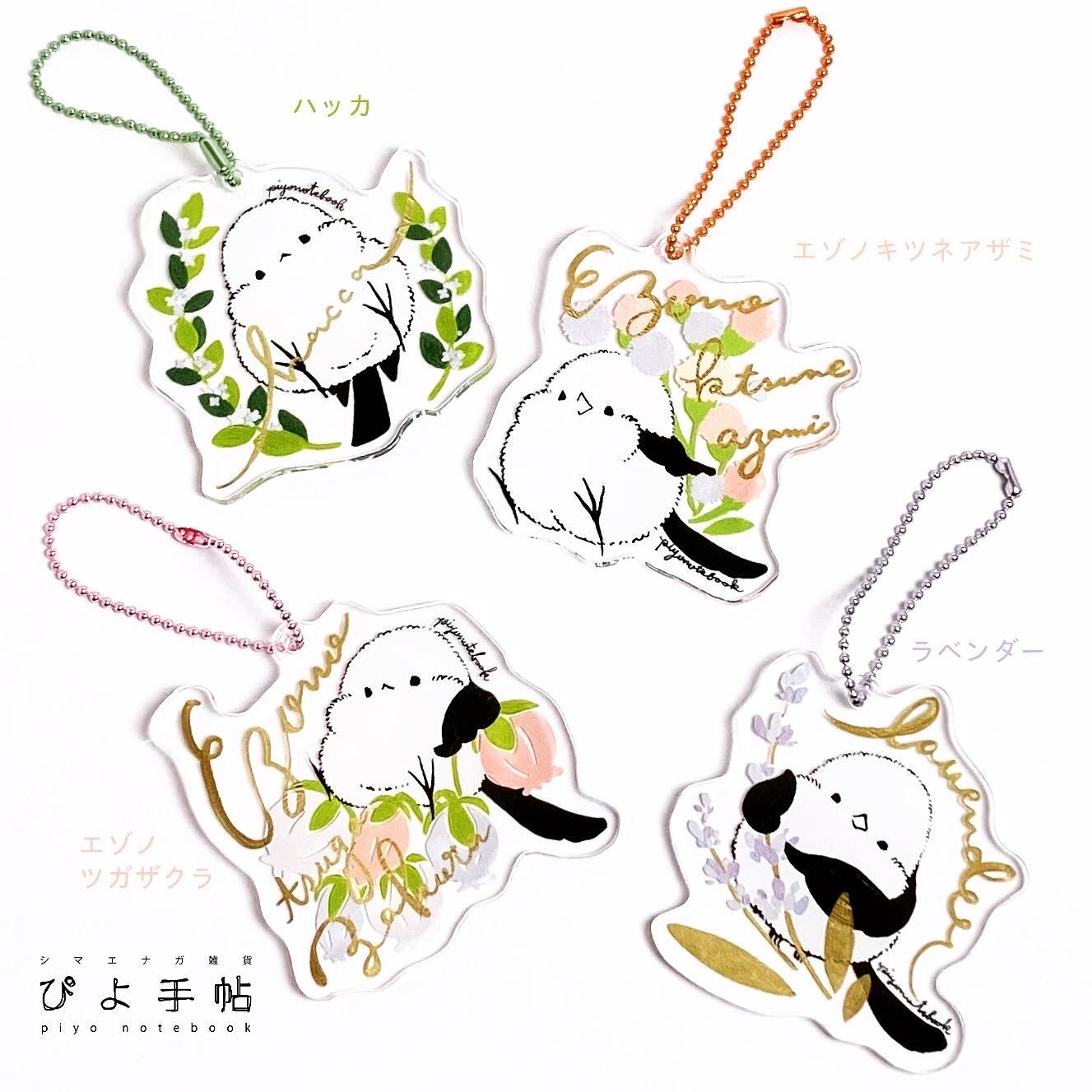 北海道のお花とシマエナガの原画がアクリルキーホルダーになりました。