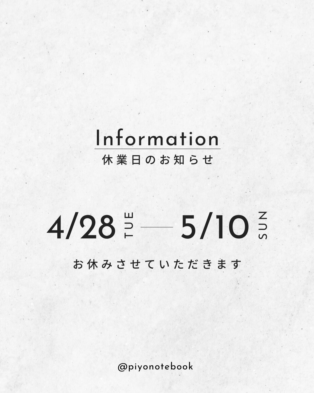 【休業日のご案内】4/28〜5/10